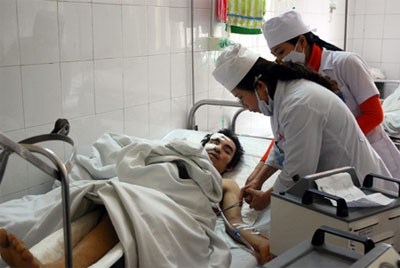 Bệnh nhân vụ tai nạn lao động tại công trình xây dựng Capital Lane, Khu đô thị Mỗ Lao, quận Hà Đông (Hà Nội) ngày 21-2-2012 được điều trị tại Bệnh viện 103