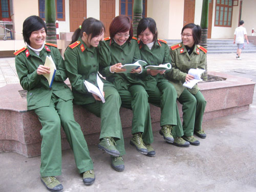 Chúng tôi tới thăm khu nhà ở của học viên nữ Học viện Quân y đúng lúc các bạn vừa tan học.Từ xa, chúng tôi đã nghe rõ tiếng cười đùa cùng những lời bàn tán: “Tổng kết công tác phụ nữ nhiệm kỳ này, nhiều chị em được khen thưởng lắm. Lớp mình chắc có nhiều hơn năm ngoái đấy”.